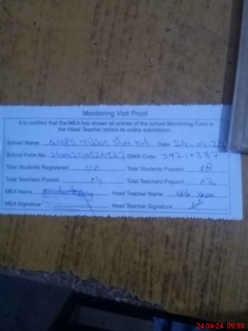 | EMIS Code: 39210387 | Name of School: GGPS TIBBA SHER KOT | |||