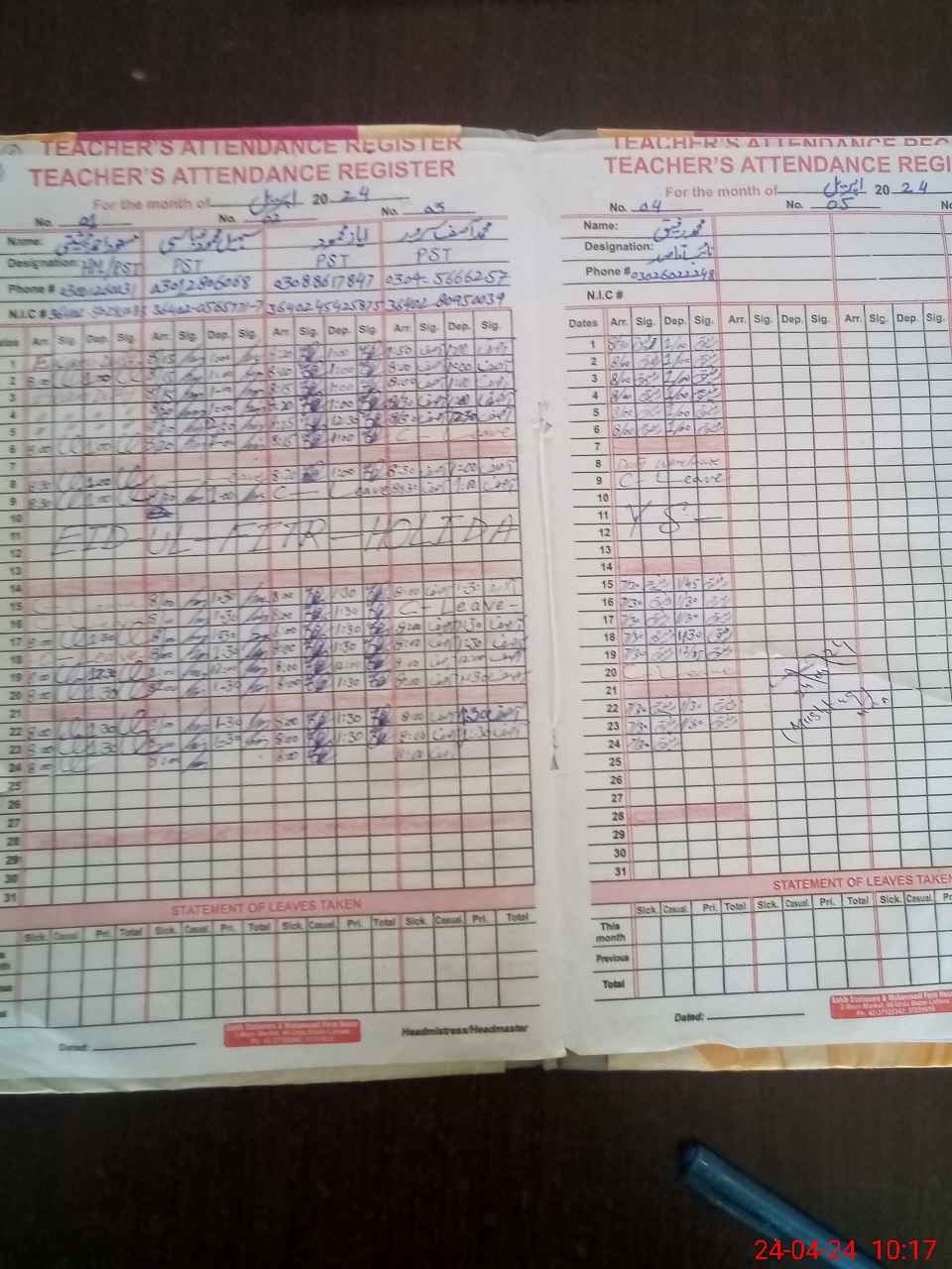 | Name: MA**** AH**** CH**** Designation: (School Headmaster's/Headmistress's) PST Phone/Cell Number: 03**** |