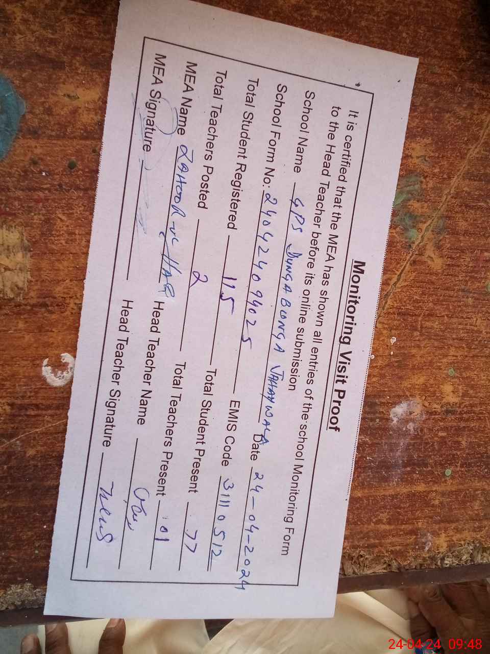 | EMIS Code: 31110512 | Name of School: GPS DUNGA BUNGA (JHANEY WALA) | |||