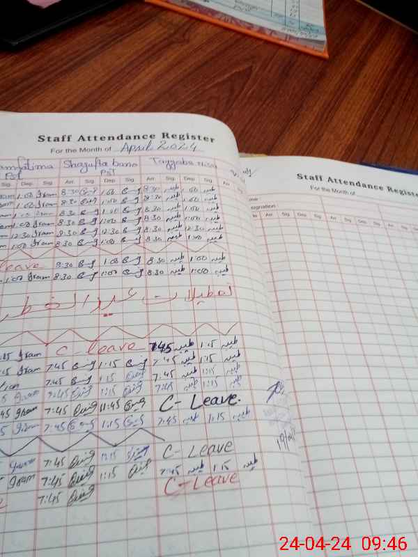 | CNIC | Full Name | Designation | R/C | Absence During Last Calender Month |