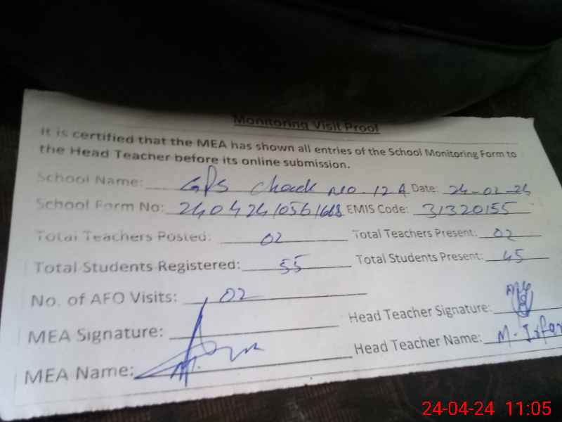 | EMIS Code: 31320155 | Name of School: GPS CHAK 12/A | |||