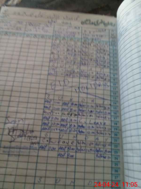 | CNIC | Full Name | Designation | R/C | Absence During Last Calender Month |