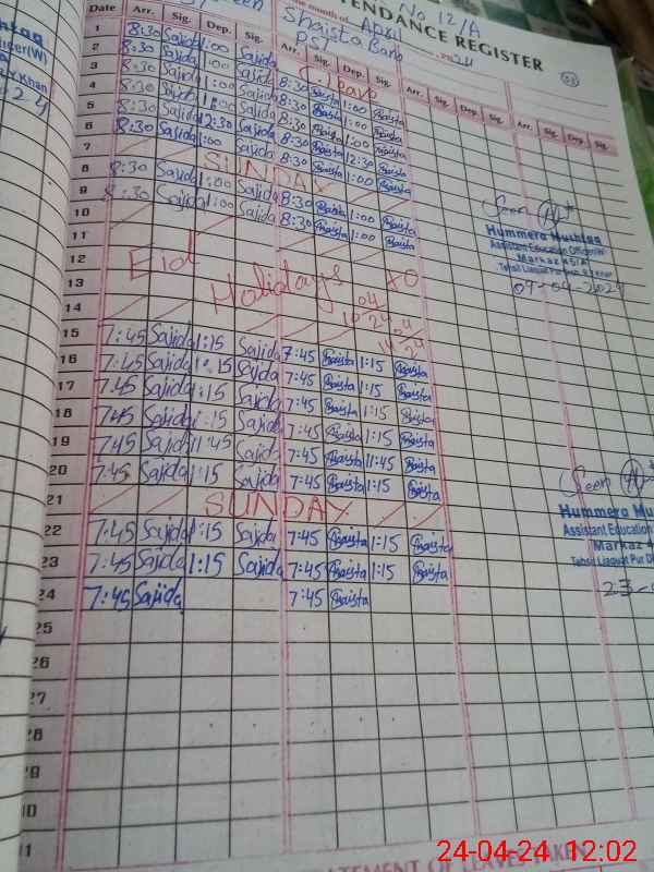 | CNIC | Full Name | Designation | R/C | Absence During Last Calender Month |