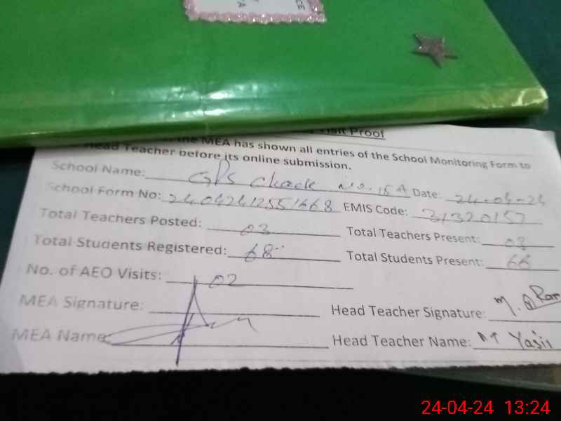 | Attendance Register | Head Teacher | MEA with School | Visit Proof |