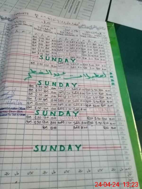 | CNIC | Full Name | Designation | R/C | Absence During Last Calender Month |