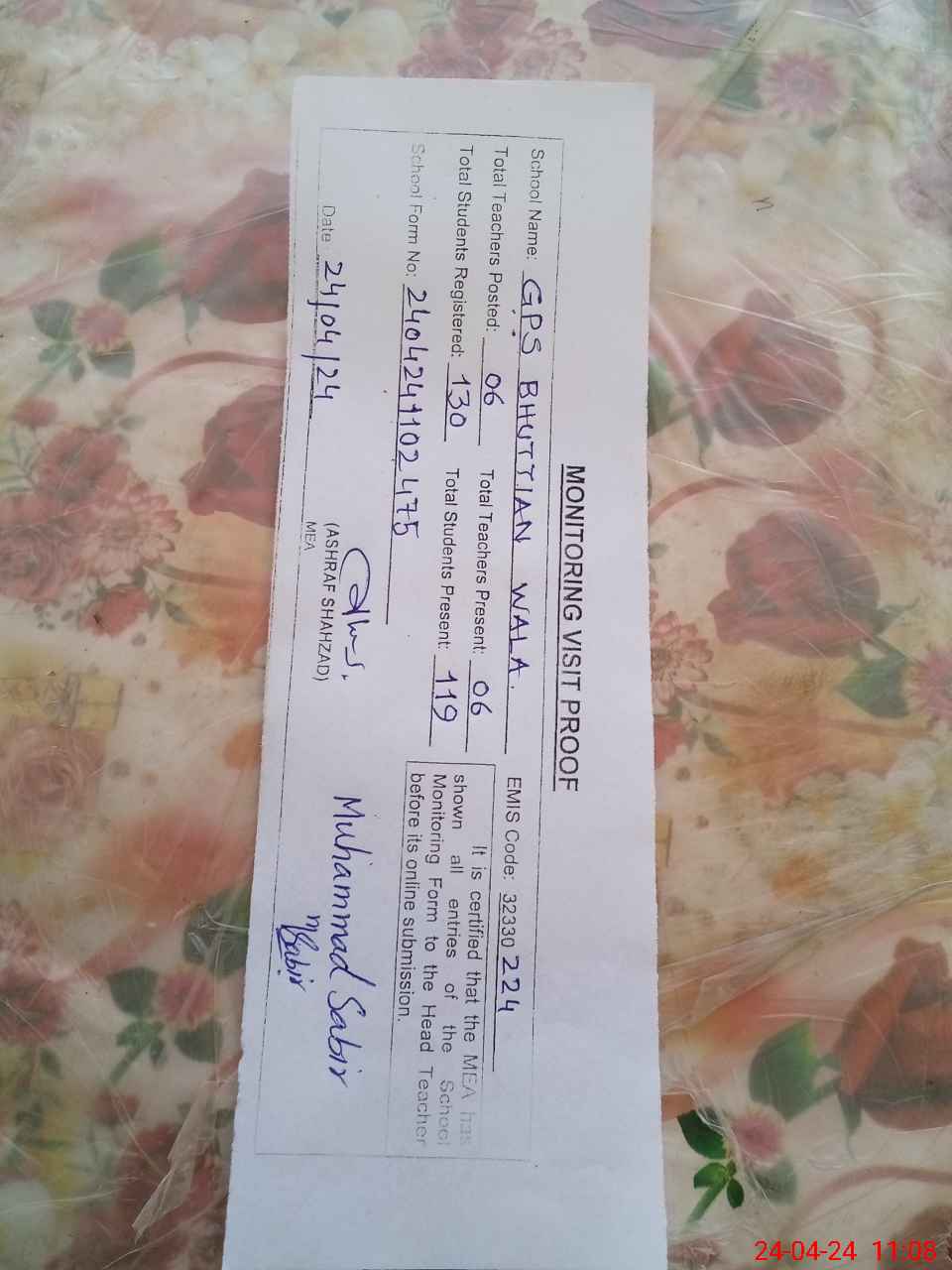 | EMIS Code: 32330224 | Name of School: GPS BHUTTIAN WALA | |||