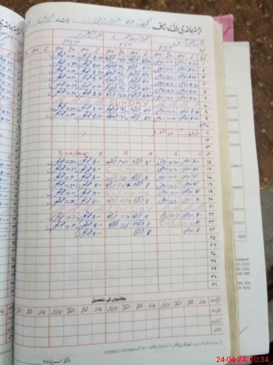 | CNIC | Full Name | Designation | R/C | Absence During Last Calender Month |
