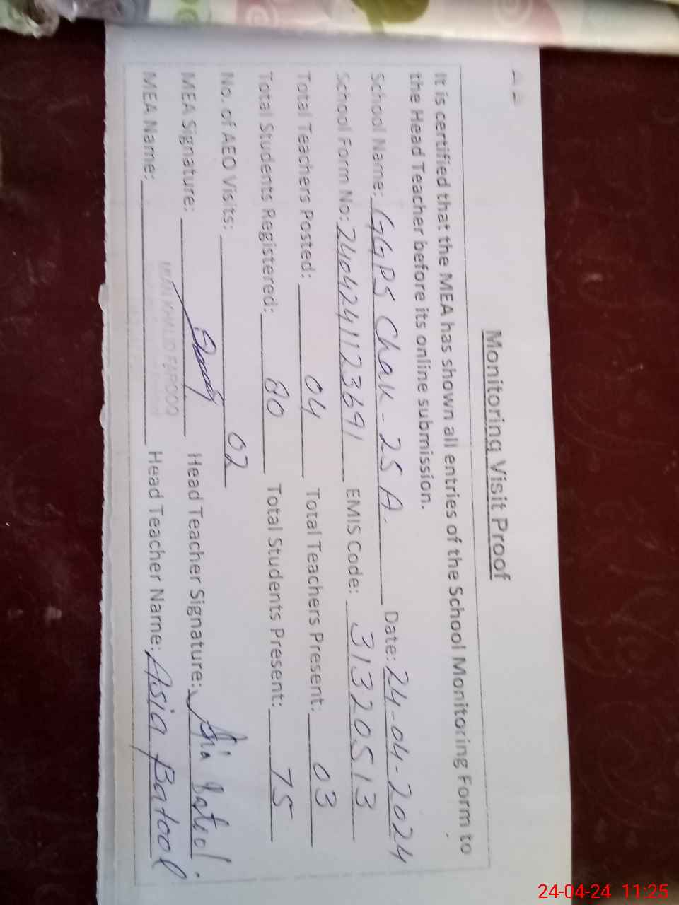 | EMIS Code: 31320513 | Name of School: GGPS CHAK NO.25/A | |||