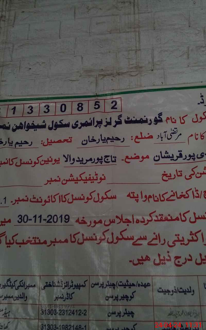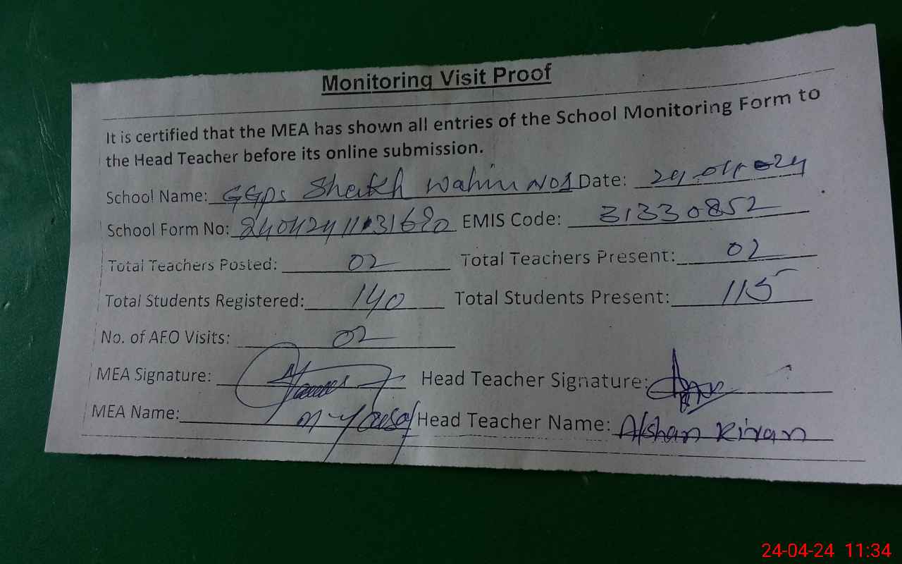 | EMIS Code: 31330852 | Name of School: GGPS SHEIKH WAHIN NO. 1 | |||