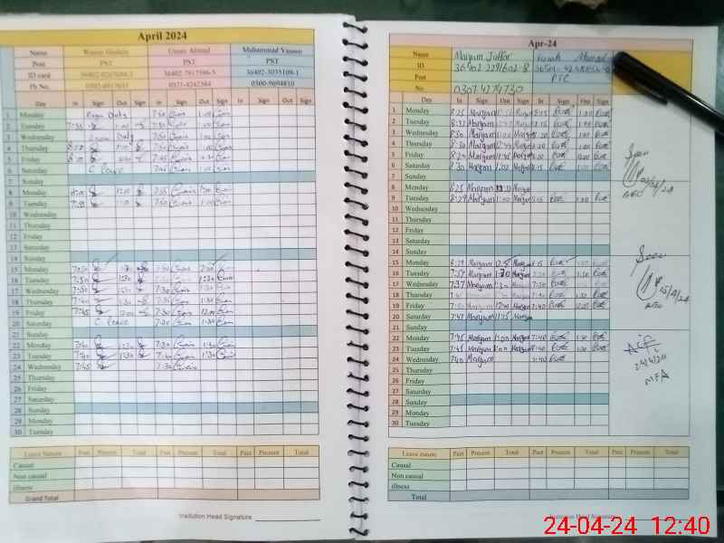 | CNIC | Full Name | Designation | R/C | Absence During Last Calender Month |