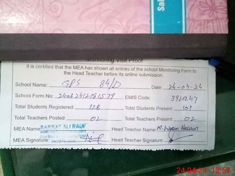 | EMIS Code: 39210247 | Name of School: GPS CHAK NO. 84 / D | |||