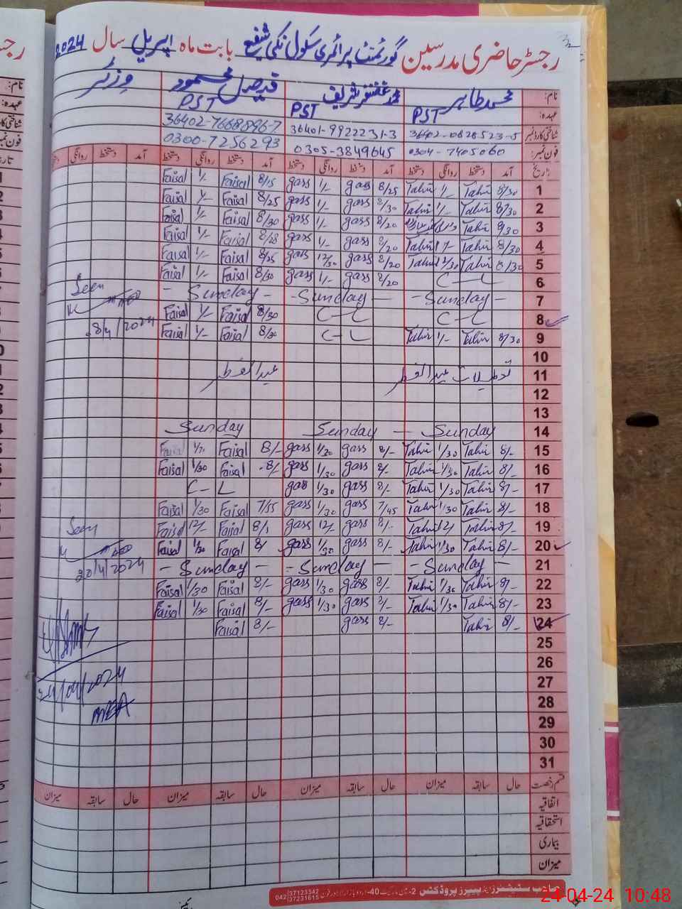| Name: MU**** TA**** Designation: (School Headmaster's/Headmistress's) PST Phone/Cell Number: 03**** |