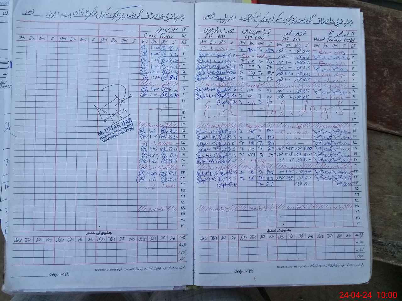 | CNIC | Full Name | Designation | R/C | Absence During Last Calender Month |