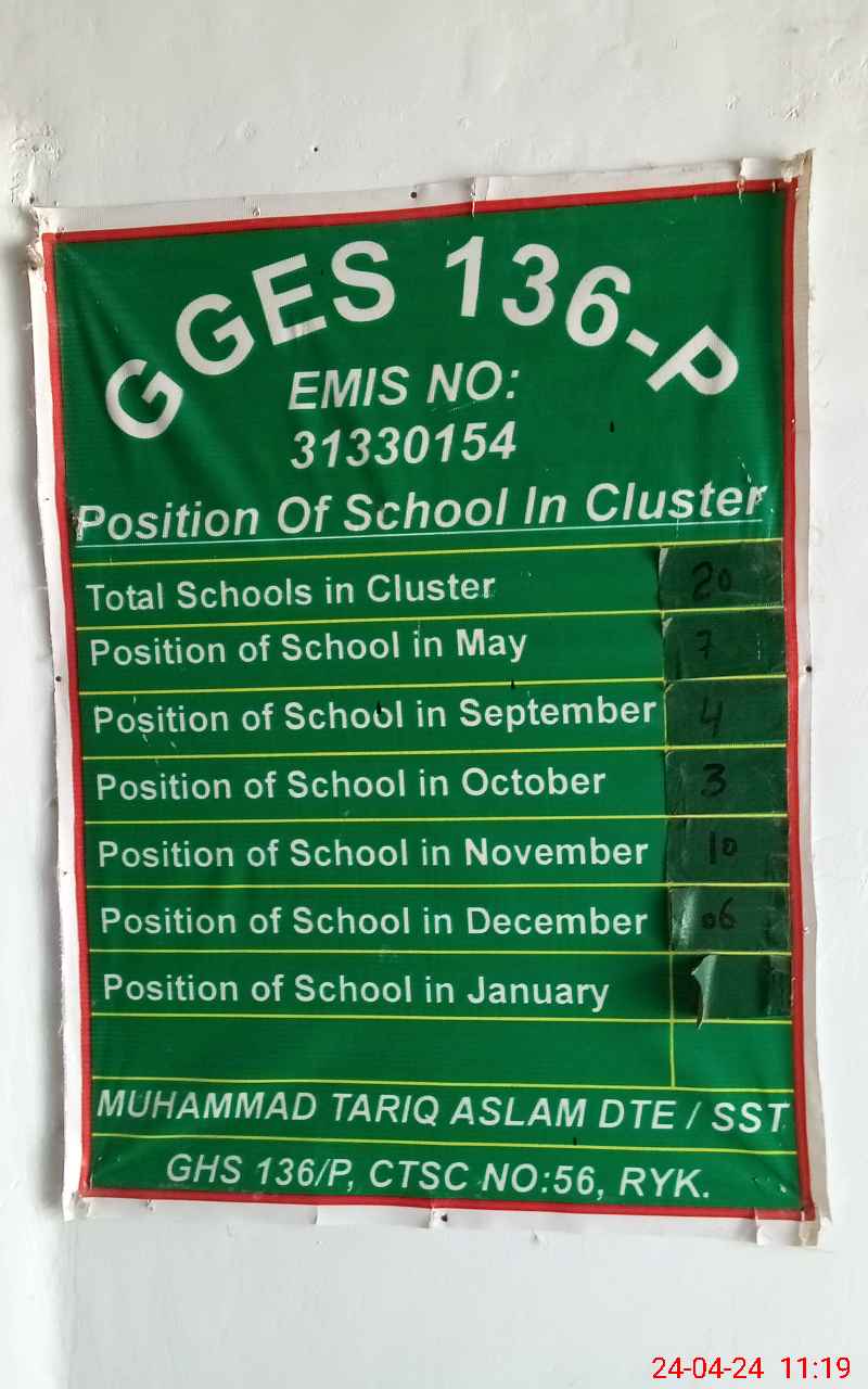 | EMIS Code: 31330154 | Name of School: GGES CHAK NO. 136/P | |||