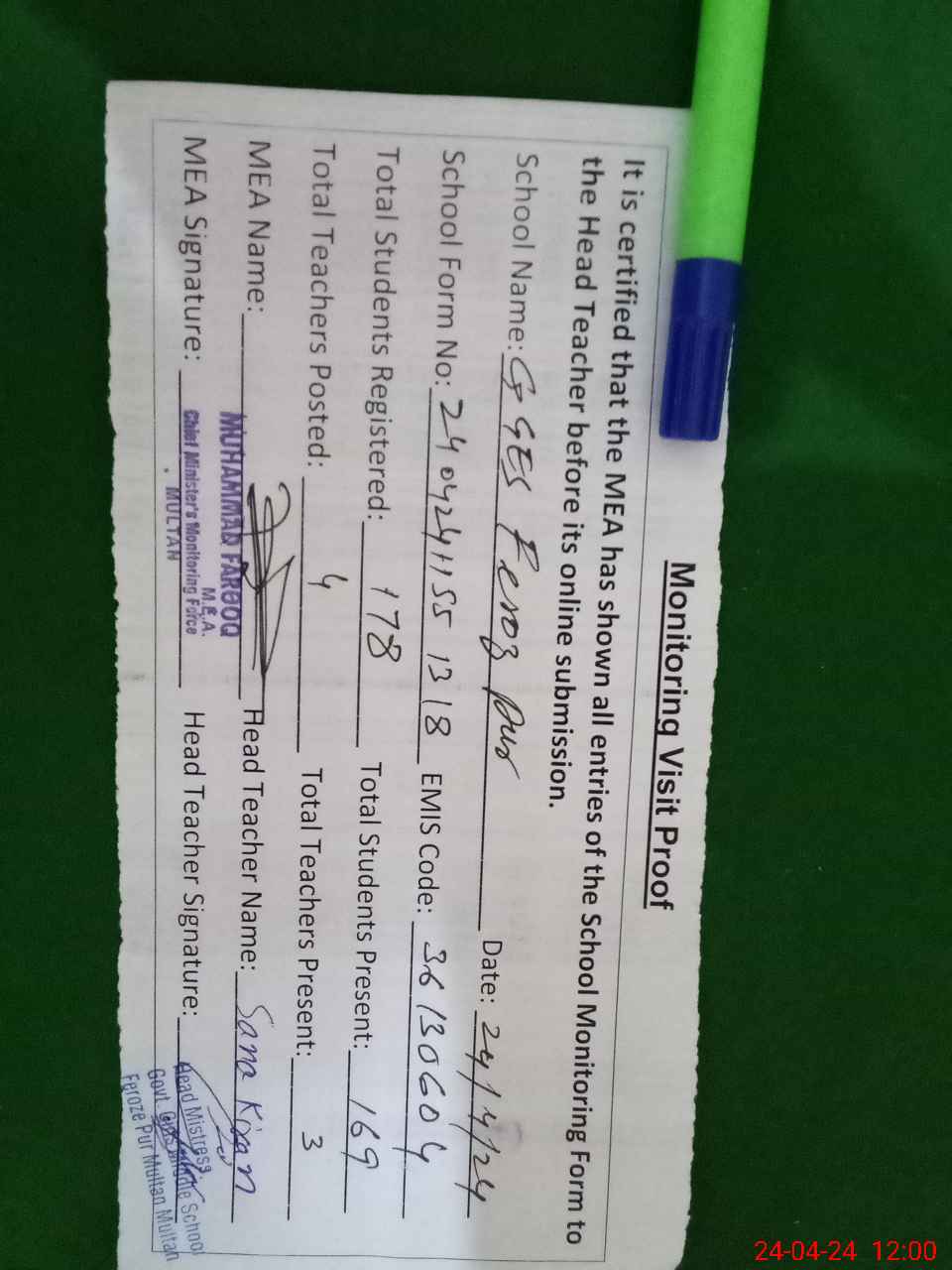 | EMIS Code: 36130604 | Name of School: GGES FEROZ PUR MULTAN | |||