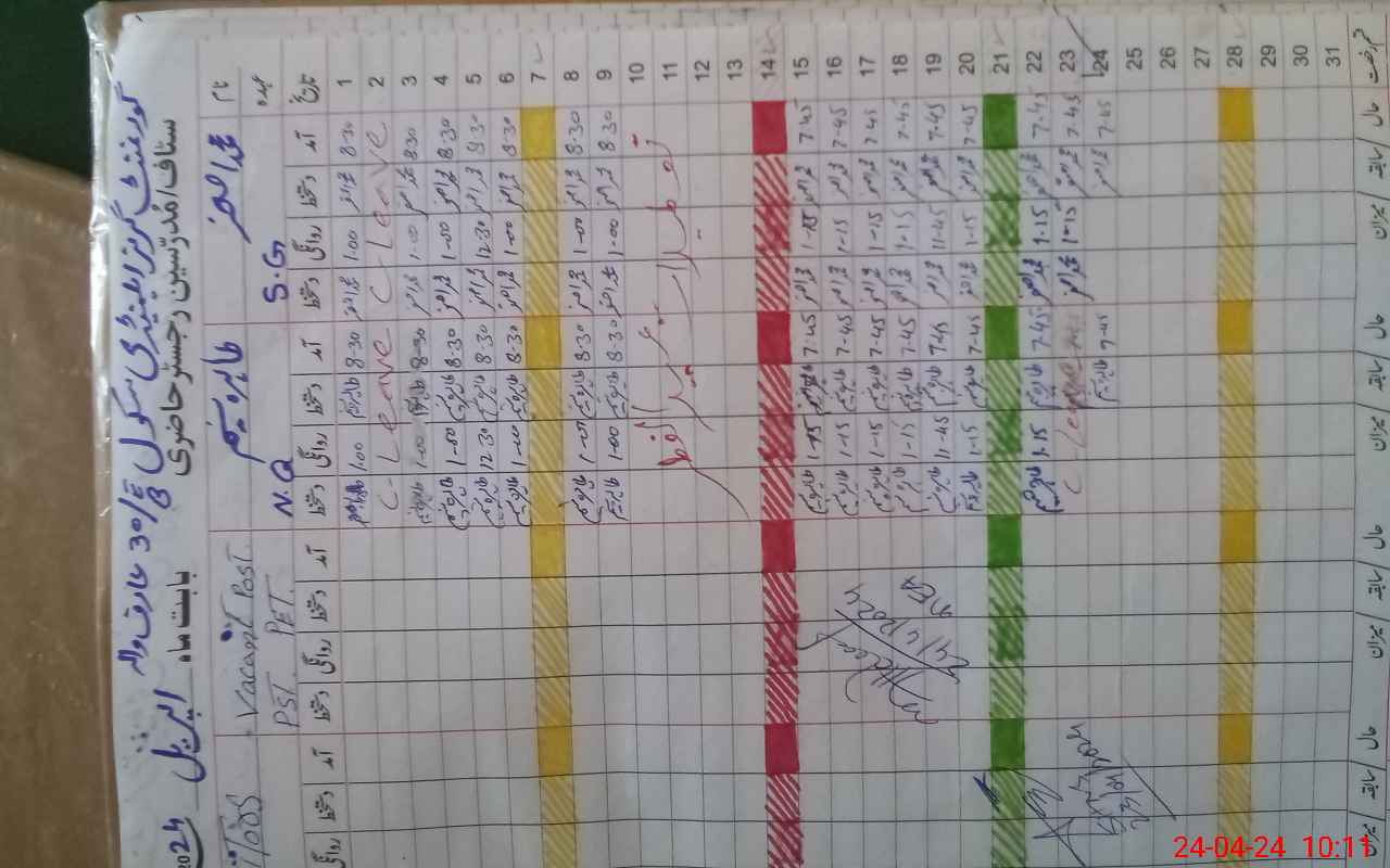 | CNIC | Full Name | Designation | R/C | Absence During Last Calender Month |