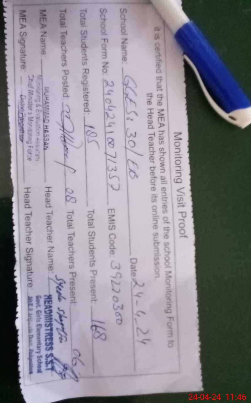 | EMIS Code: 39220300 | Name of School: GGES 30 EB KALAN | |||