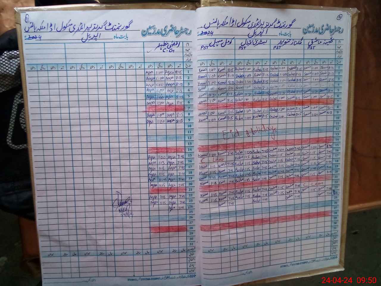 | CNIC | Full Name | Designation | R/C | Absence During Last Calender Month |