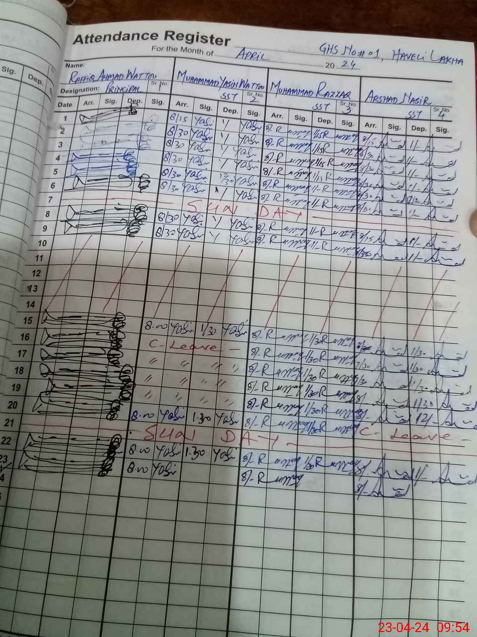 | 35**** | Mu**** Ah**** Sa**** | 3 | 1 | 0 | 0 | 0 | 0 | 0 | 0 | 0 | 0 | 0 | Exam Duty |
