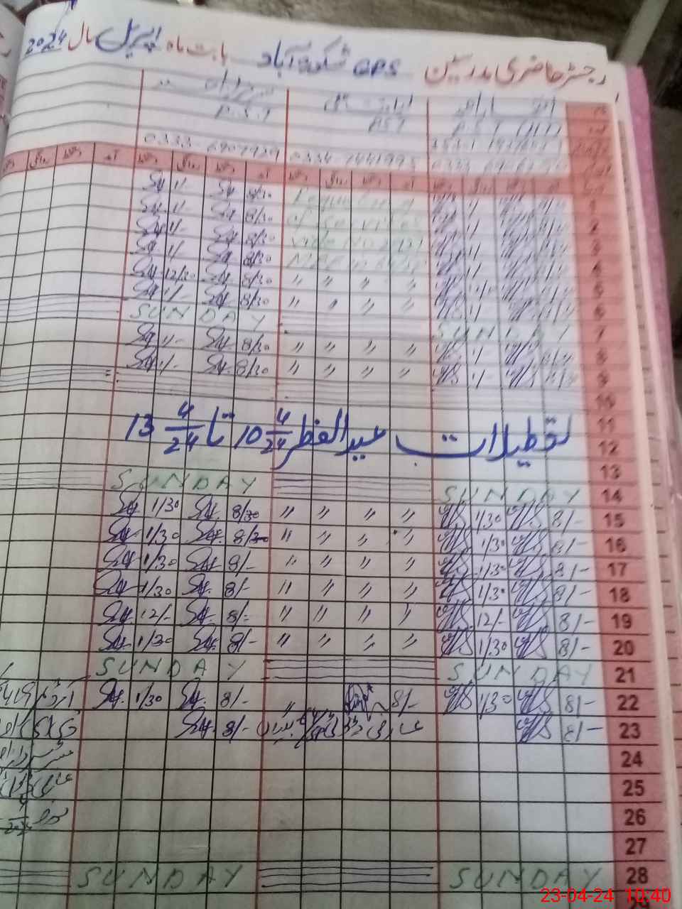 | Name: IF**** AH**** Designation: (School Headmaster's/Headmistress's) PST Phone/Cell Number: 03**** |