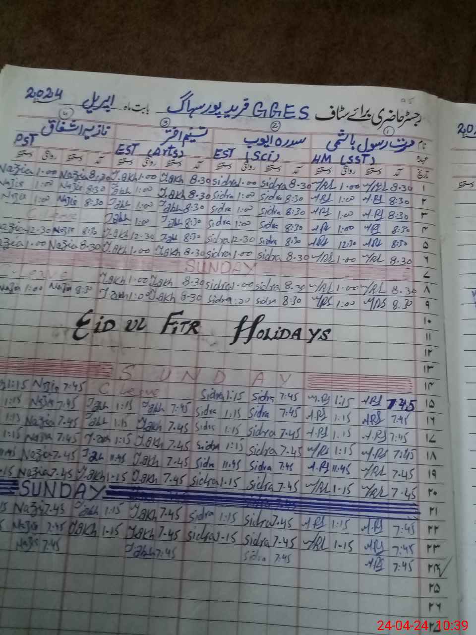 | Leave | Duty | Absent | Maternity | Medical | Ex- Pak |