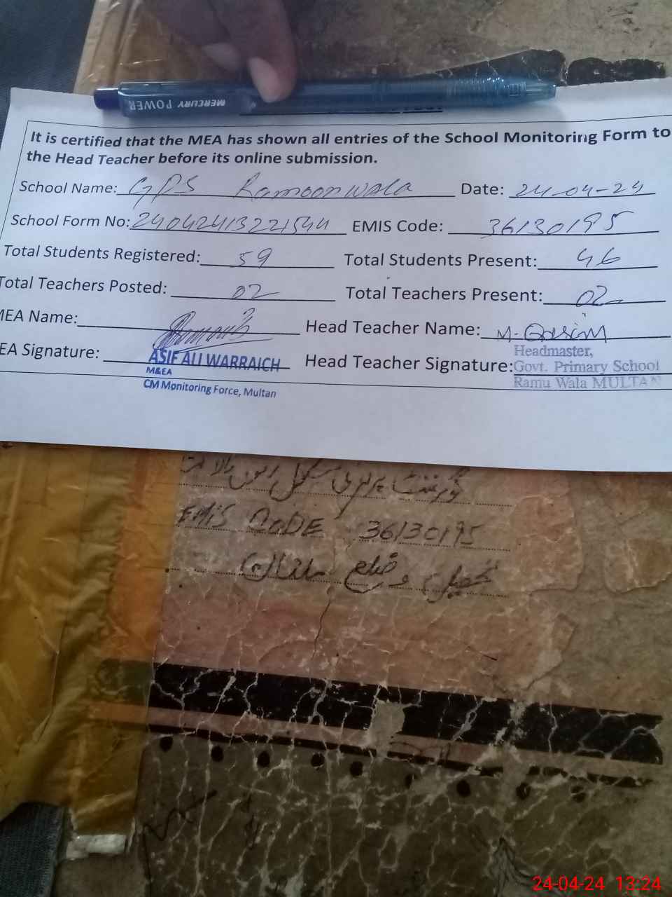 | EMIS Code: 36130195 | Name of School: GPS RAMOON WALA | |||