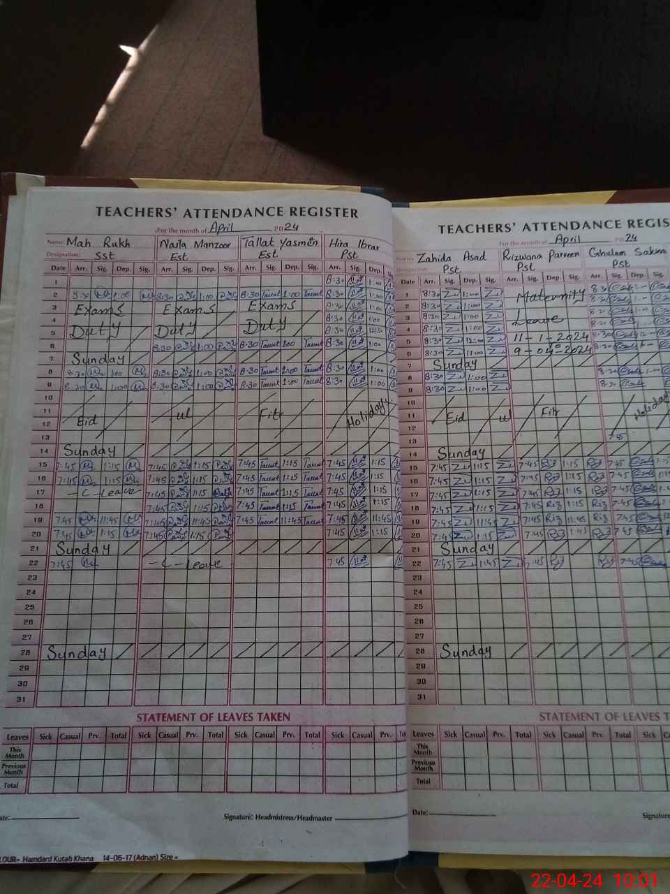 | 31**** | Ta**** Ya**** | EST | Regular | 0 | 0 | 0 | 0 | 0 | 0 | 0 | 0 | 0 | Exam Duty |