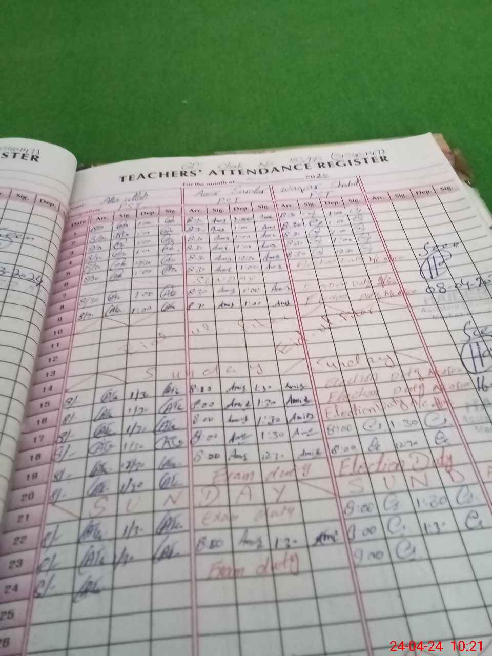 | 31**** | Am**** Sa**** | 1 | 1 | 0 | 0 | 0 | 0 | 0 | 0 | 0 | 0 | 0 | Exam Duty |