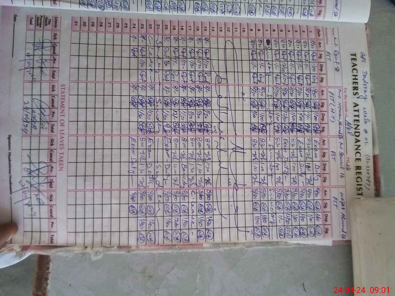 | Leave | Duty | Absent | Maternity | Medical | Ex- Pak |