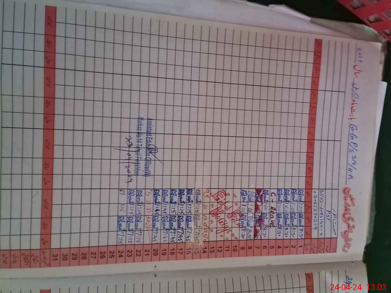 | CNIC | Full Name | Designation | R/C | Absence During Last Calender Month |
