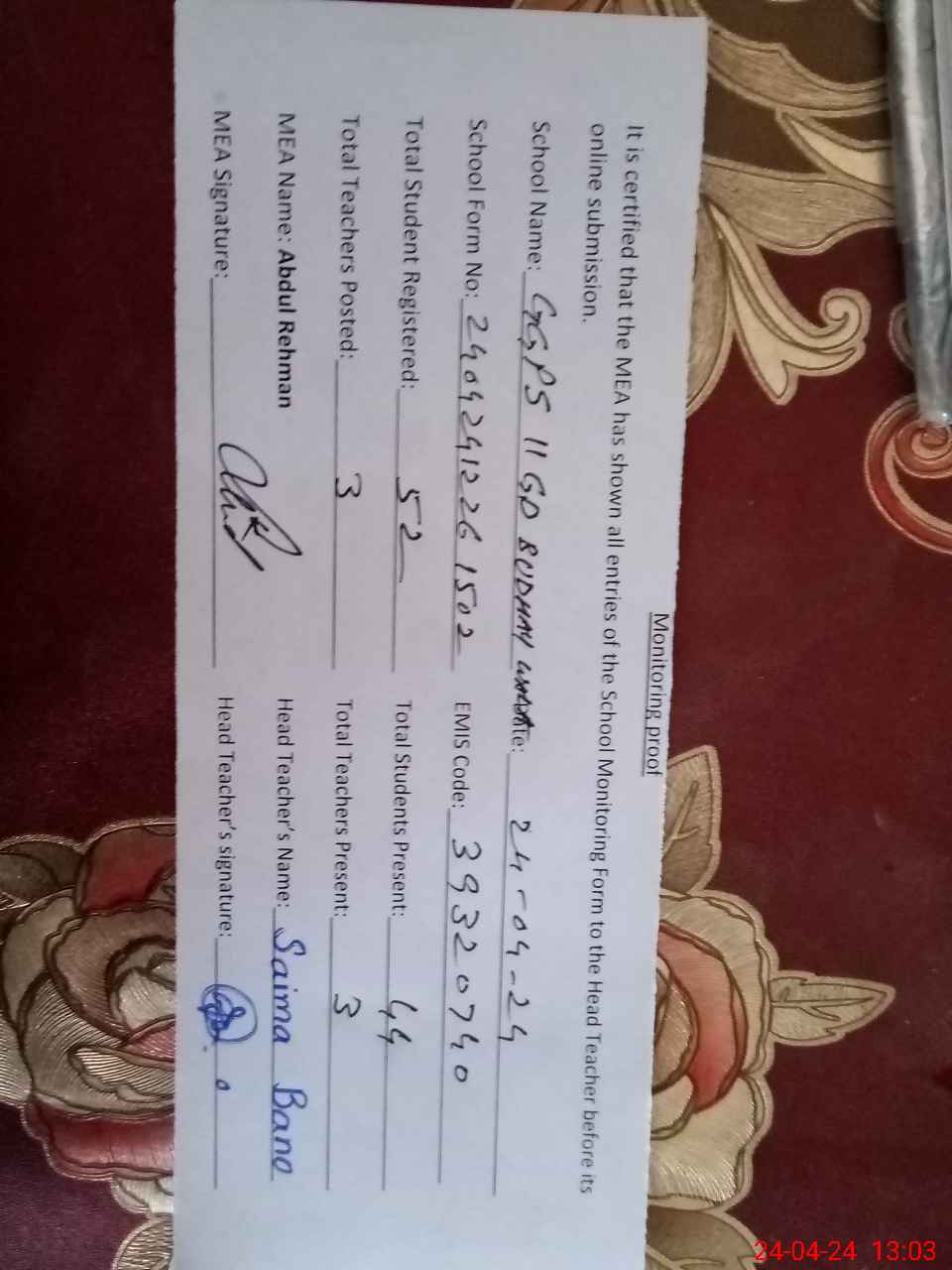 | EMIS Code: 39320740 | Name of School: GGPS 11/G.D BUDHAY WALA | |||
