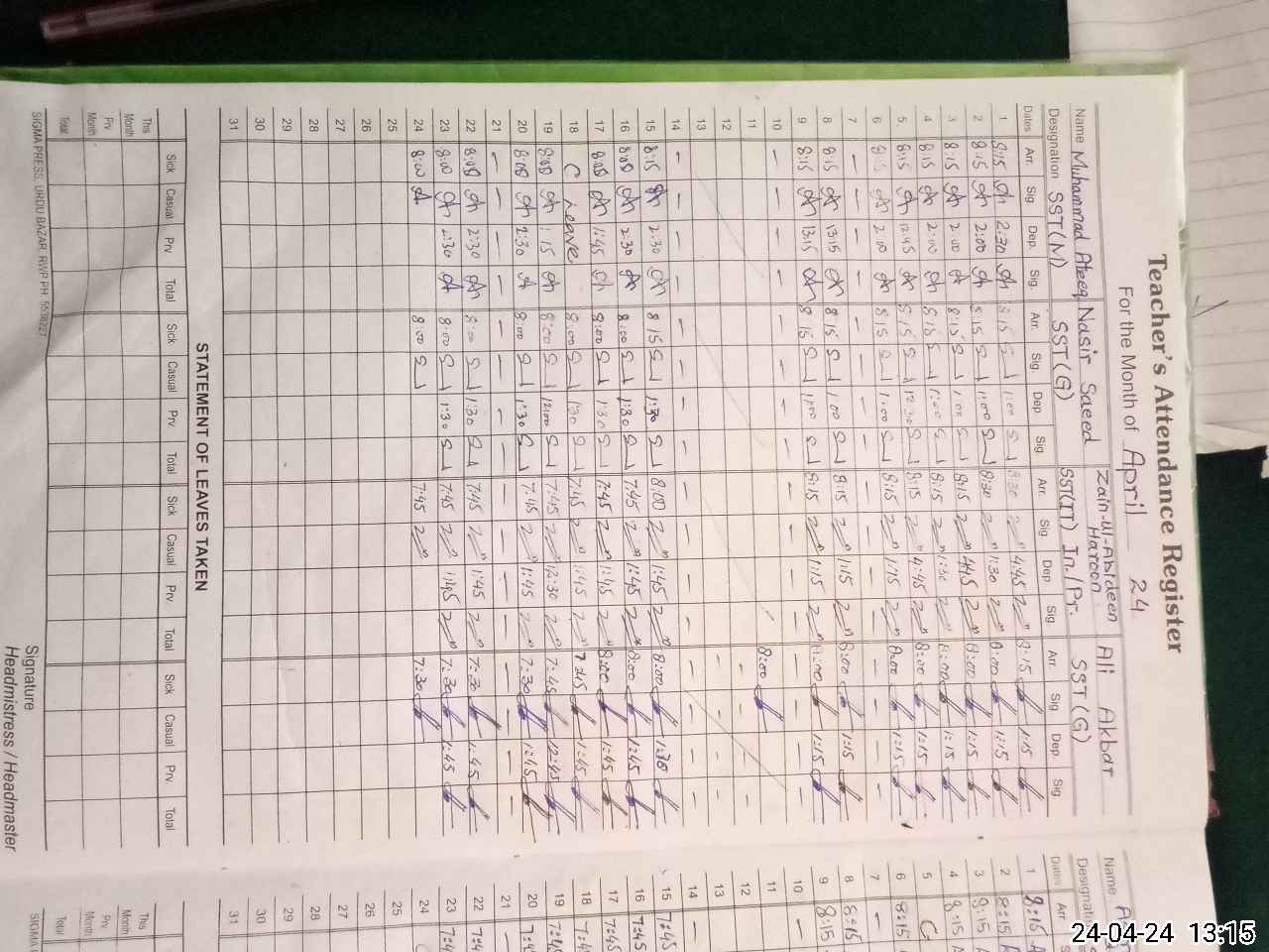 | 34**** | Mu**** Aa**** Az**** | SSE | Contract | 0 | 0 | 0 | 0 | 0 | 0 | 0 | 0 | 0 | Exam Duty |