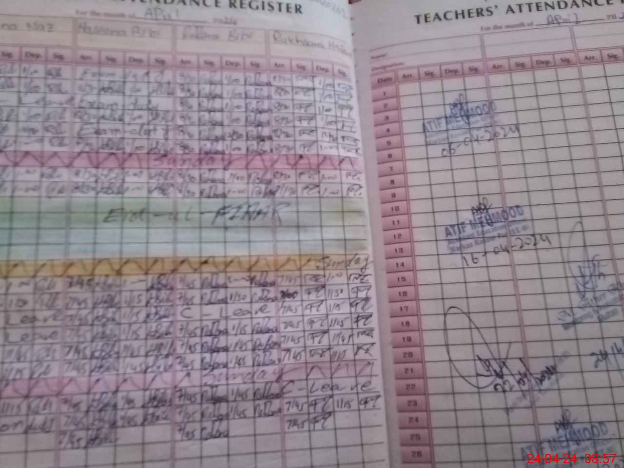 | CNIC | Full Name | Designation | R/C | Absence During Last Calender Month |
