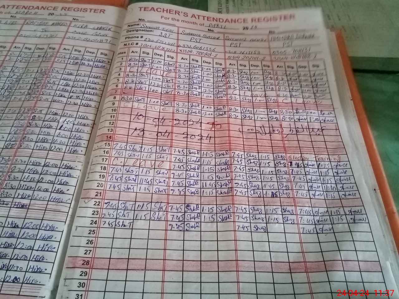 | CNIC | Full Name | Designation | R/C | Absence During Last Calender Month |