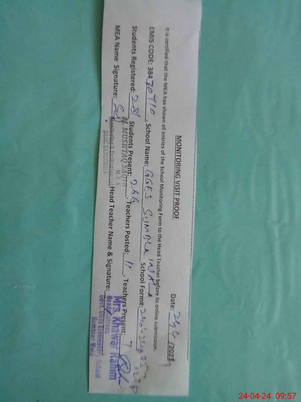 | EMIS Code: 38470710 | Name of School: GGES SUMBLAN WALA | |||