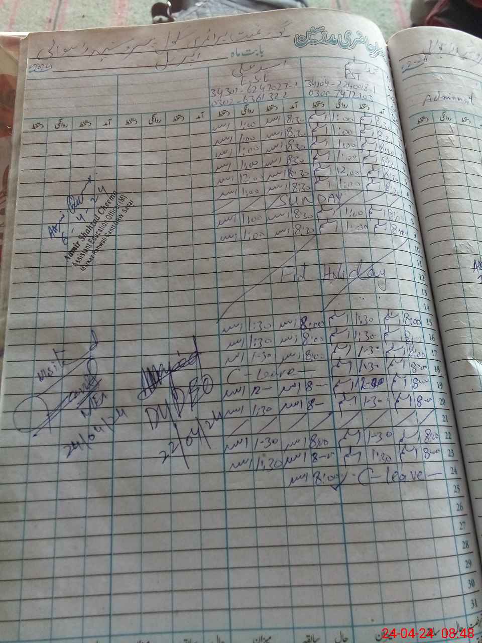 | 34**** | Mu**** Ka**** Ri**** | Contract | 0 | 0 | 31 | 0 | 0 | 0 | 0 | 0 | 0 | Absent (Un-Authorized) | |