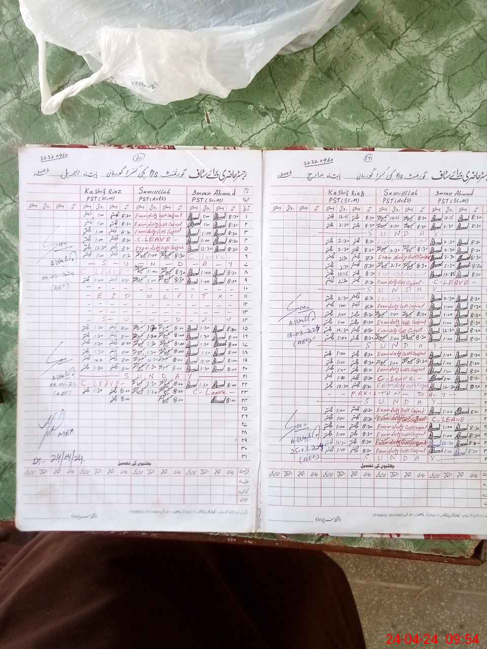 | CNIC | Full Name | Designation | R/C | Absence During Last Calender Month |