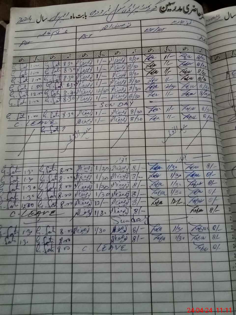 | Leave | Duty | Absent | Maternity | Medical | Ex- Pak |