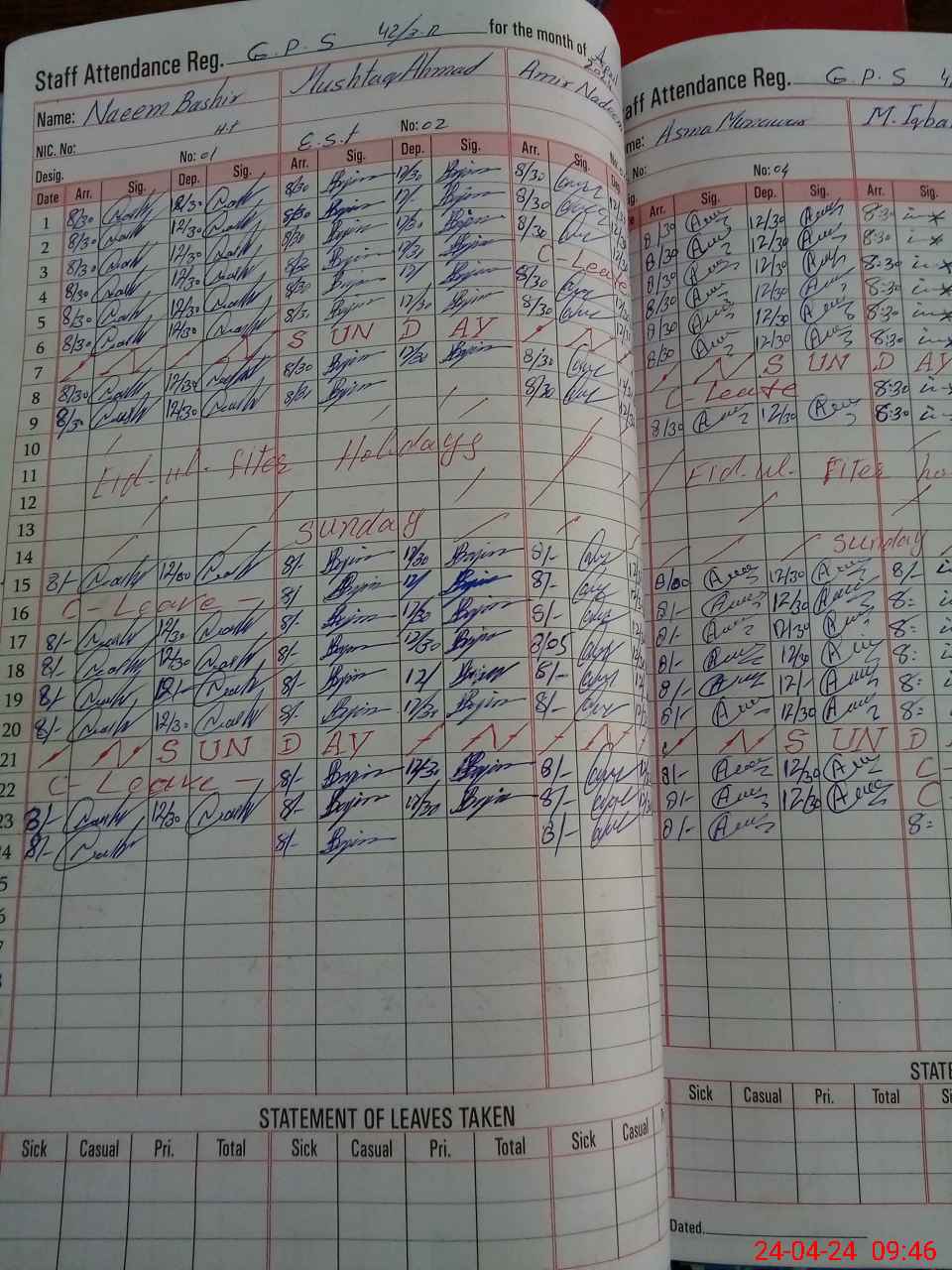 | 31**** | Mu**** Iq**** | PST | Regular | 0 | 0 | 0 | 0 | 0 | 0 | 0 | 0 | 0 | Absent (Un-Authorized) |