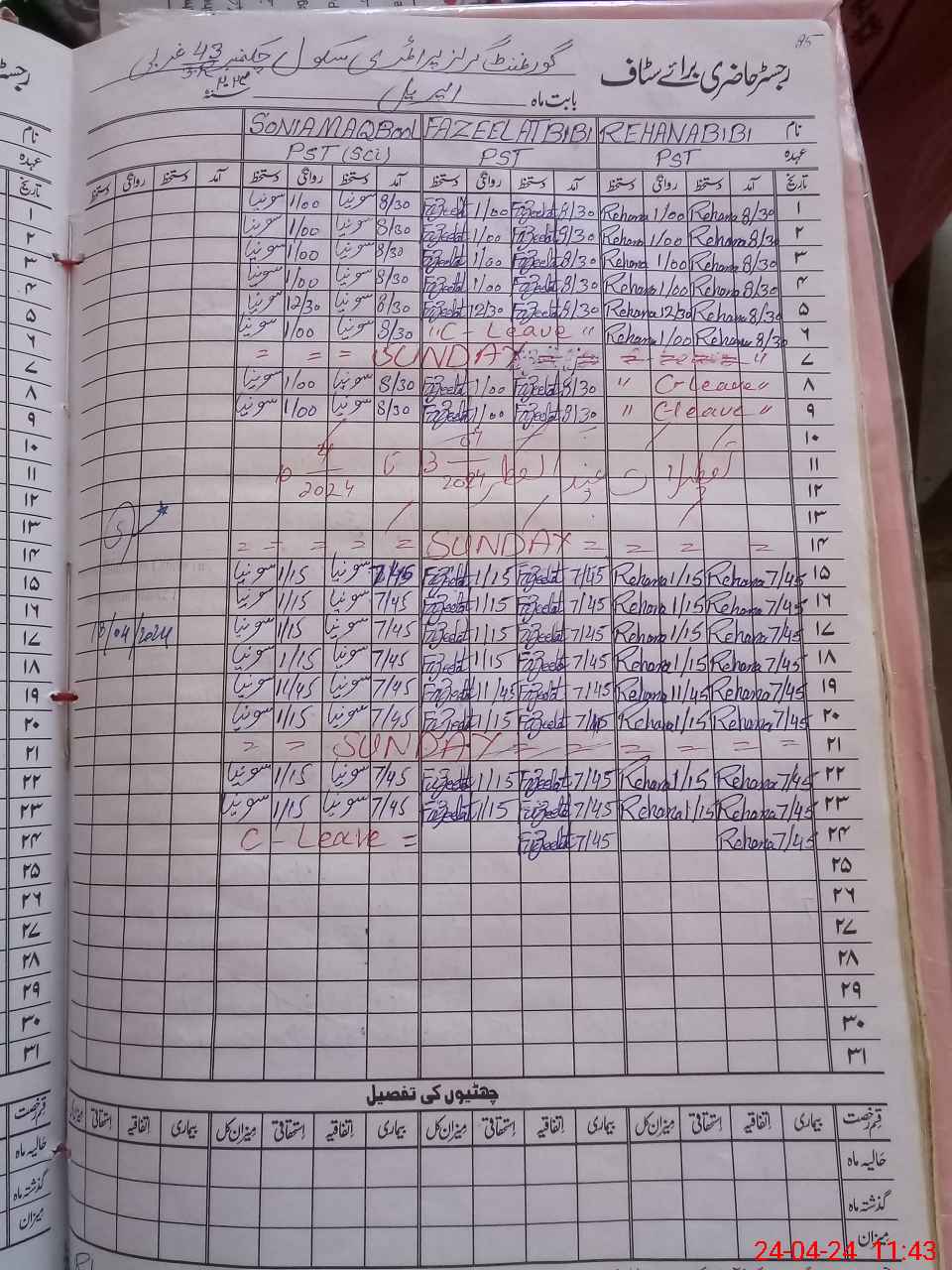 | CNIC | Full Name | Designation | R/C | Absence During Last Calender Month |