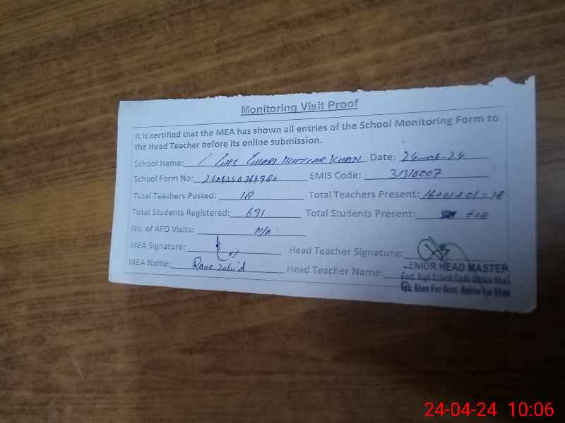 | EMIS Code: 31310007 | Name of School: GHS GARHI IKHTIAR KHAN | |||