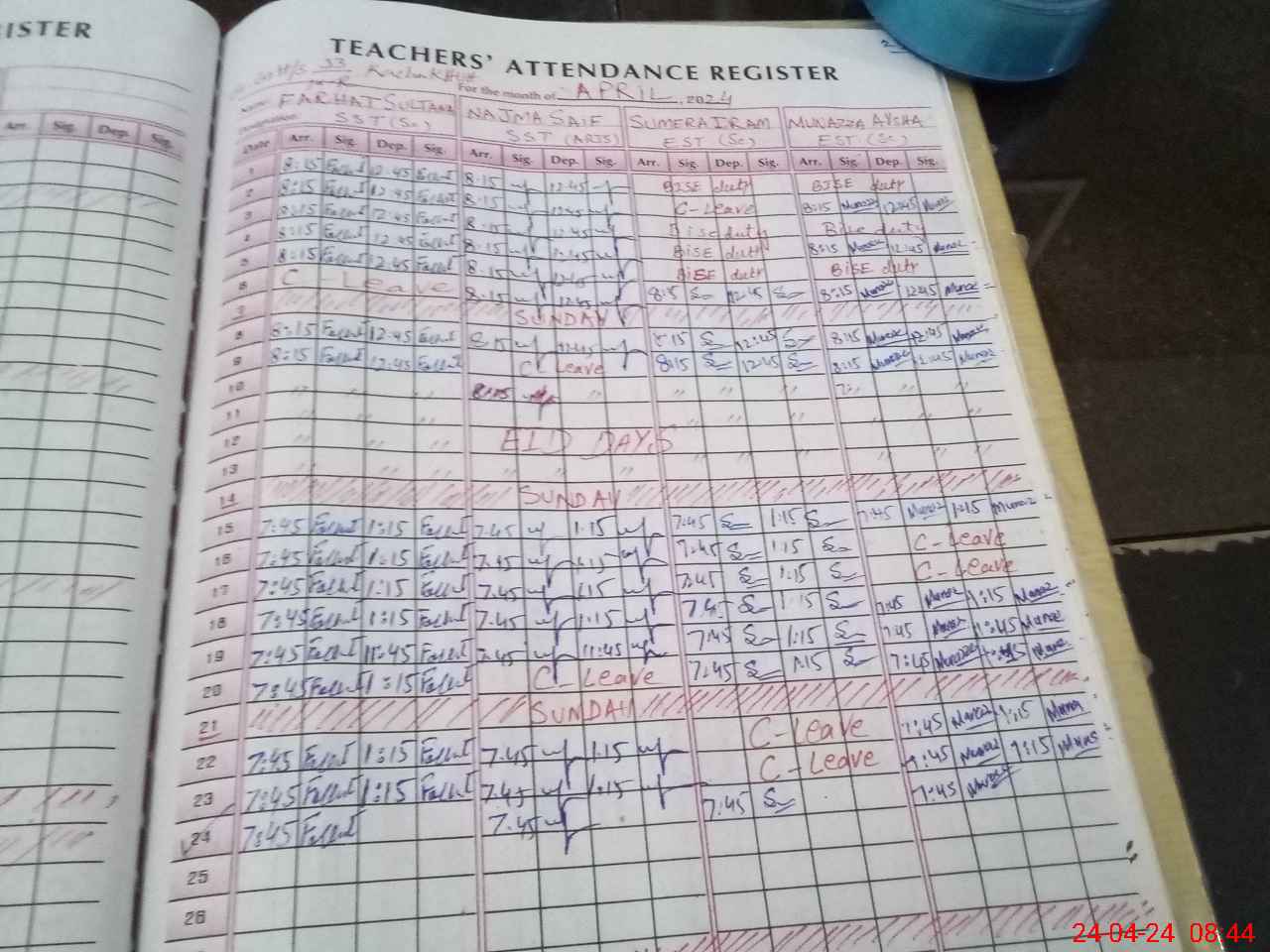 | Leave | Duty | Absent | Maternity | Medical | Ex- Pak |