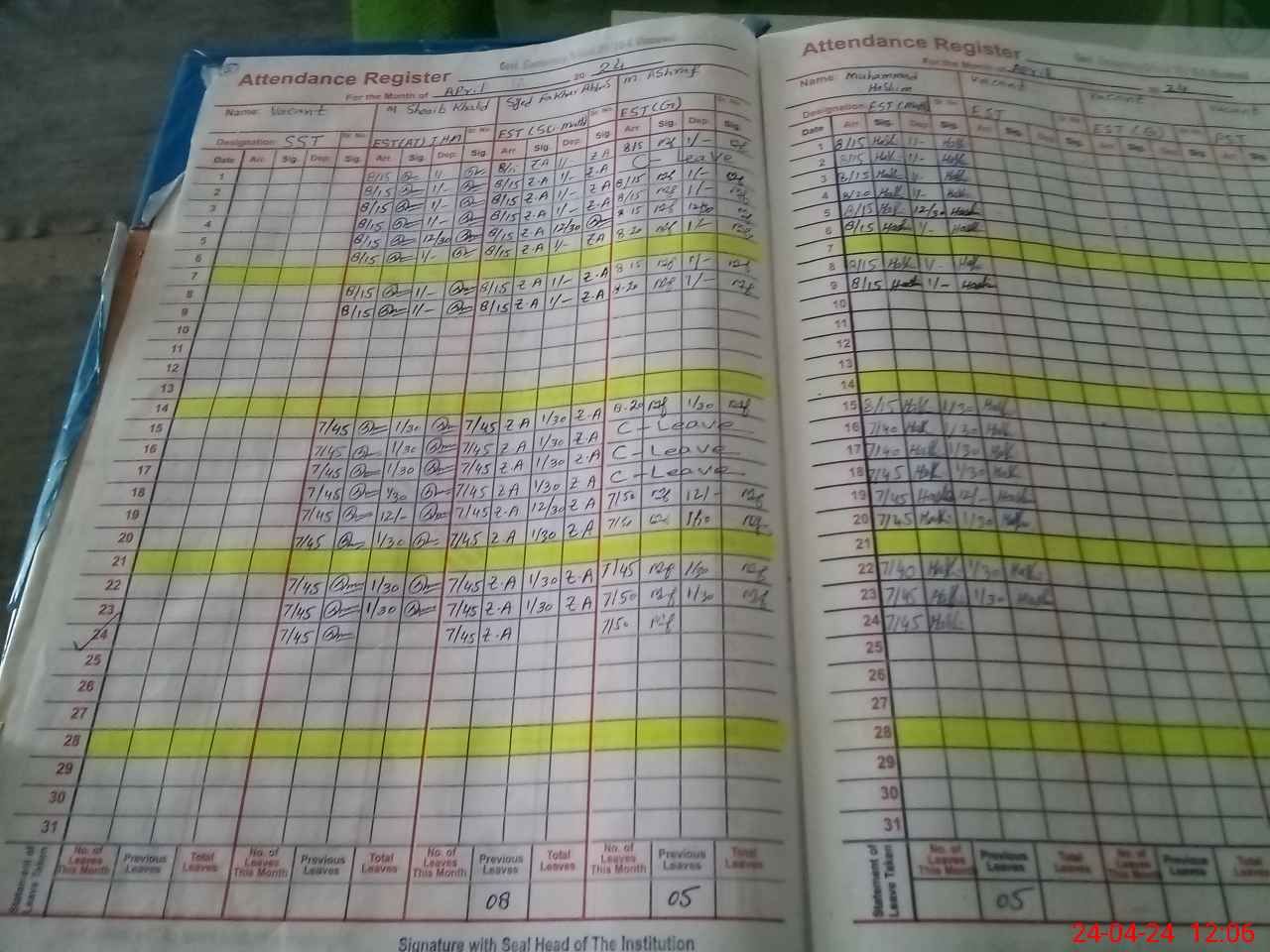 | 36**** | Ab**** Ha**** | Contract | 0 | 0 | 0 | 0 | 0 | 0 | 0 | 0 | 0 | Exam Duty | |