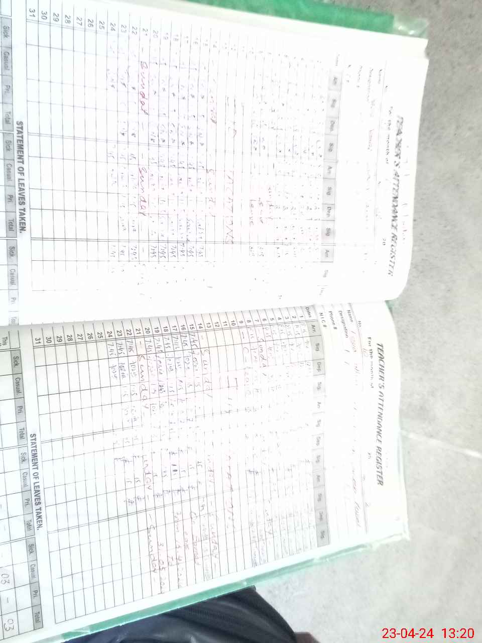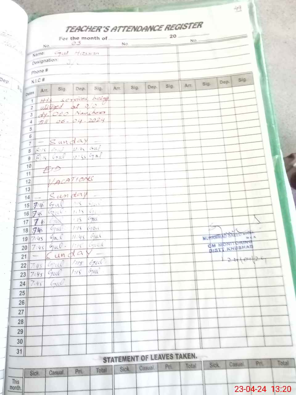 | CNIC | Full Name | Designation | R/C | Absence During Last Calender Month |