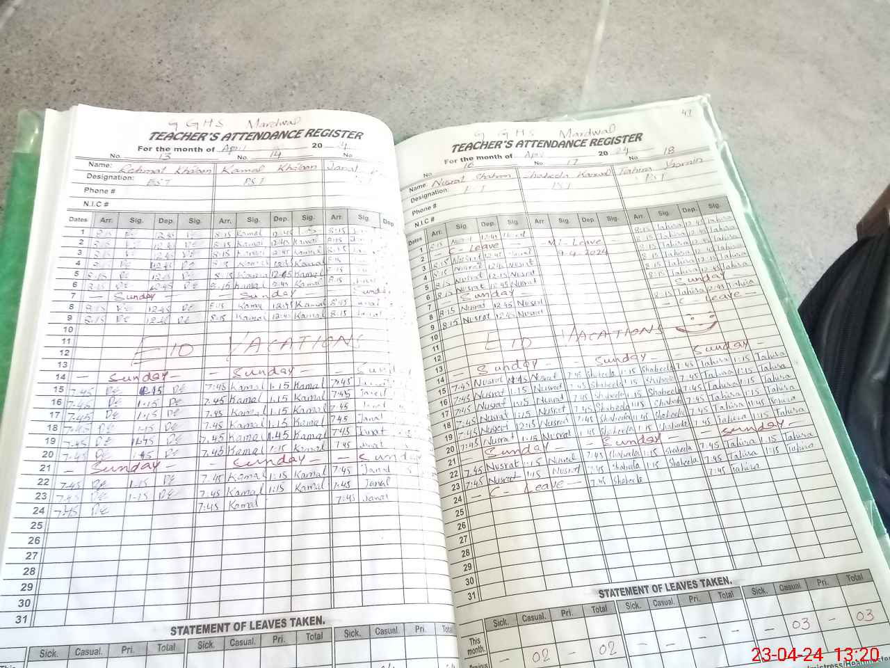 | Attendance Register | Head Teacher | MEA with School | Visit Proof |