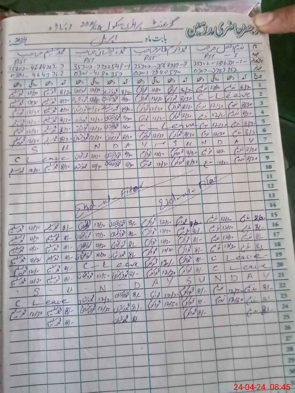 | Name: MU**** IM**** Designation: (School Headmaster's/Headmistress's) PST Phone/Cell Number: 03**** |