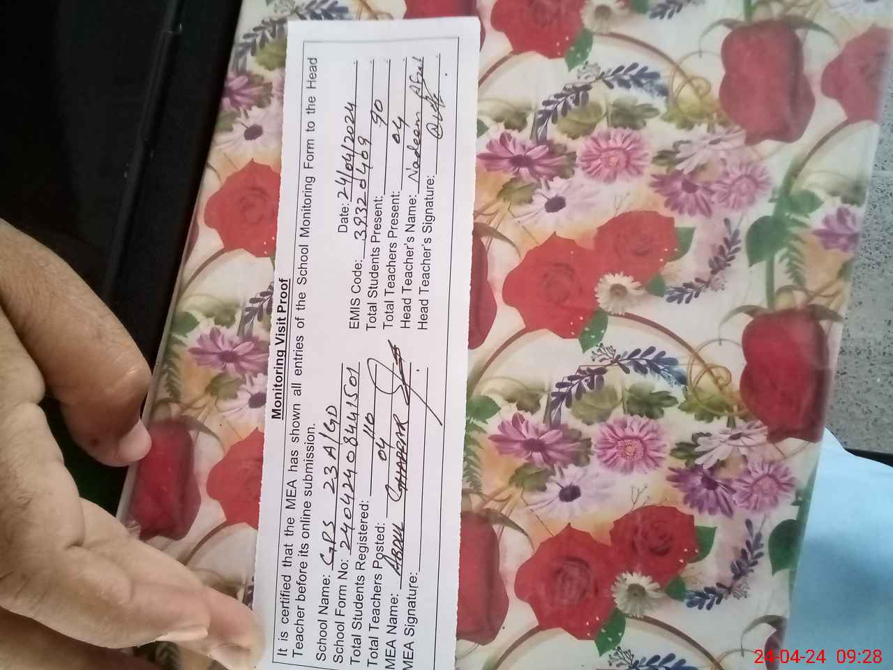 | Attendance Register | Head Teacher | MEA with School | Visit Proof |