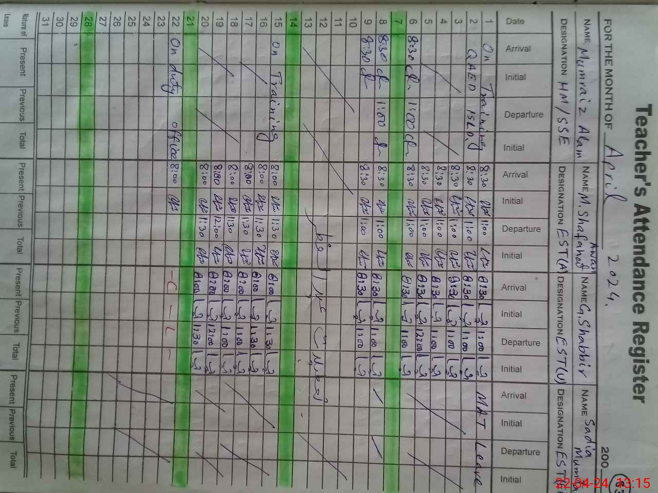 | CNIC | Full Name | Designation | R/C | Absence During Last Calender Month |