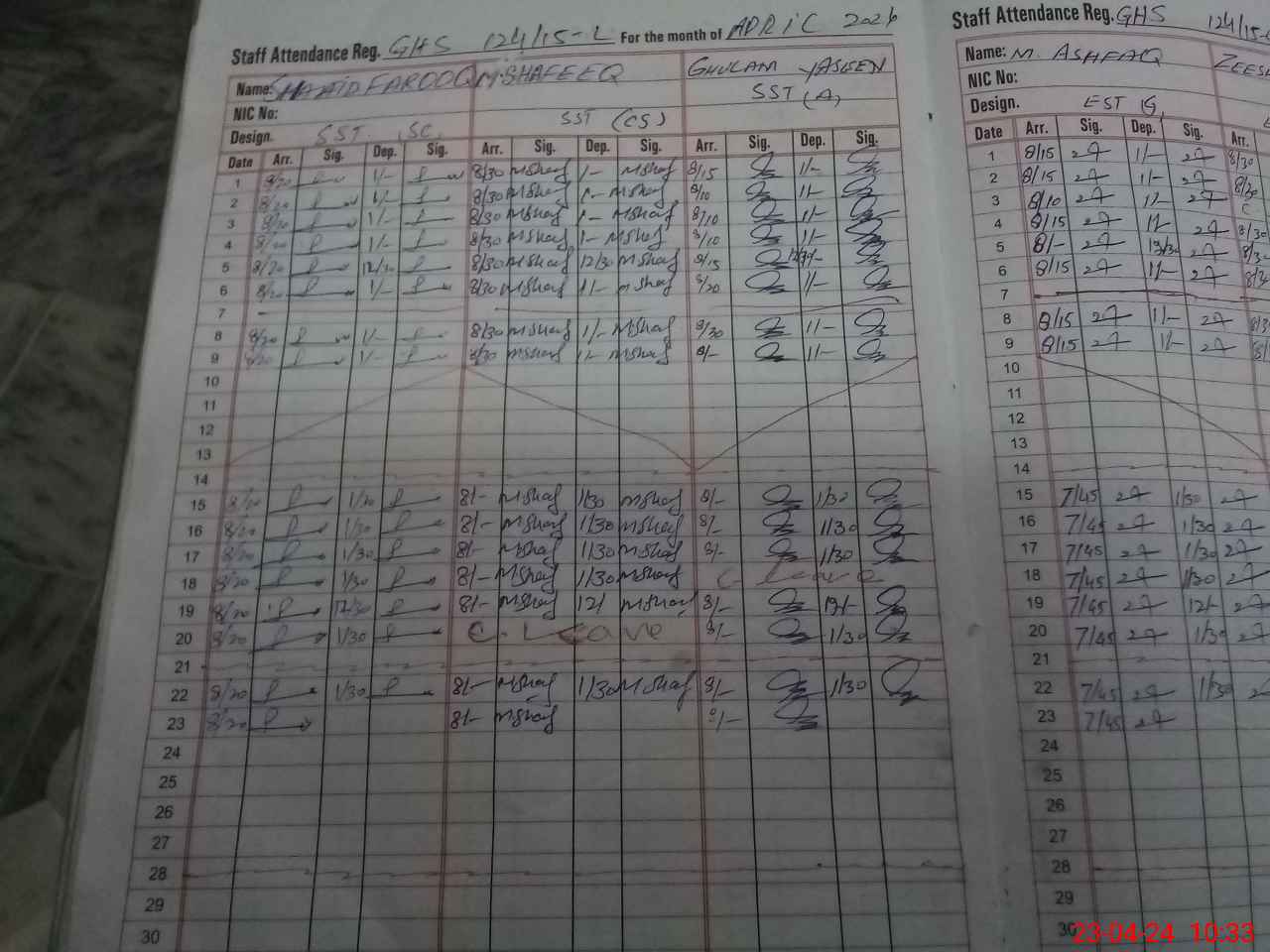| CNIC | Full Name | Designation | R/C | Absence During Last Calender Month |