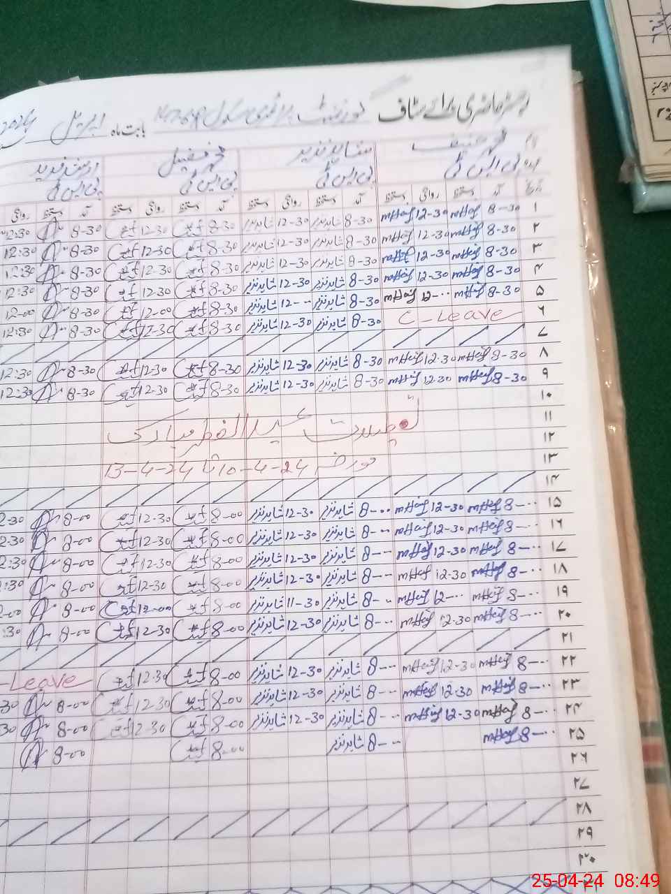 | Leave | Duty | Absent | Maternity | Medical | Ex- Pak |
